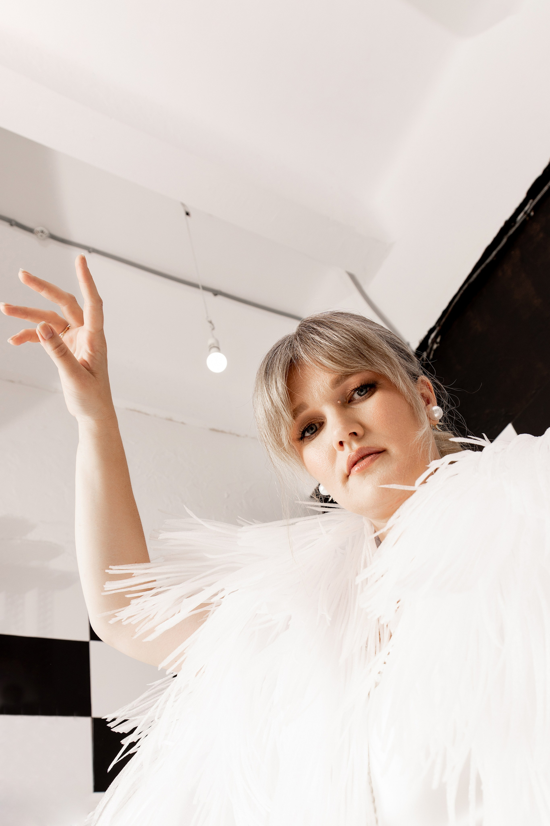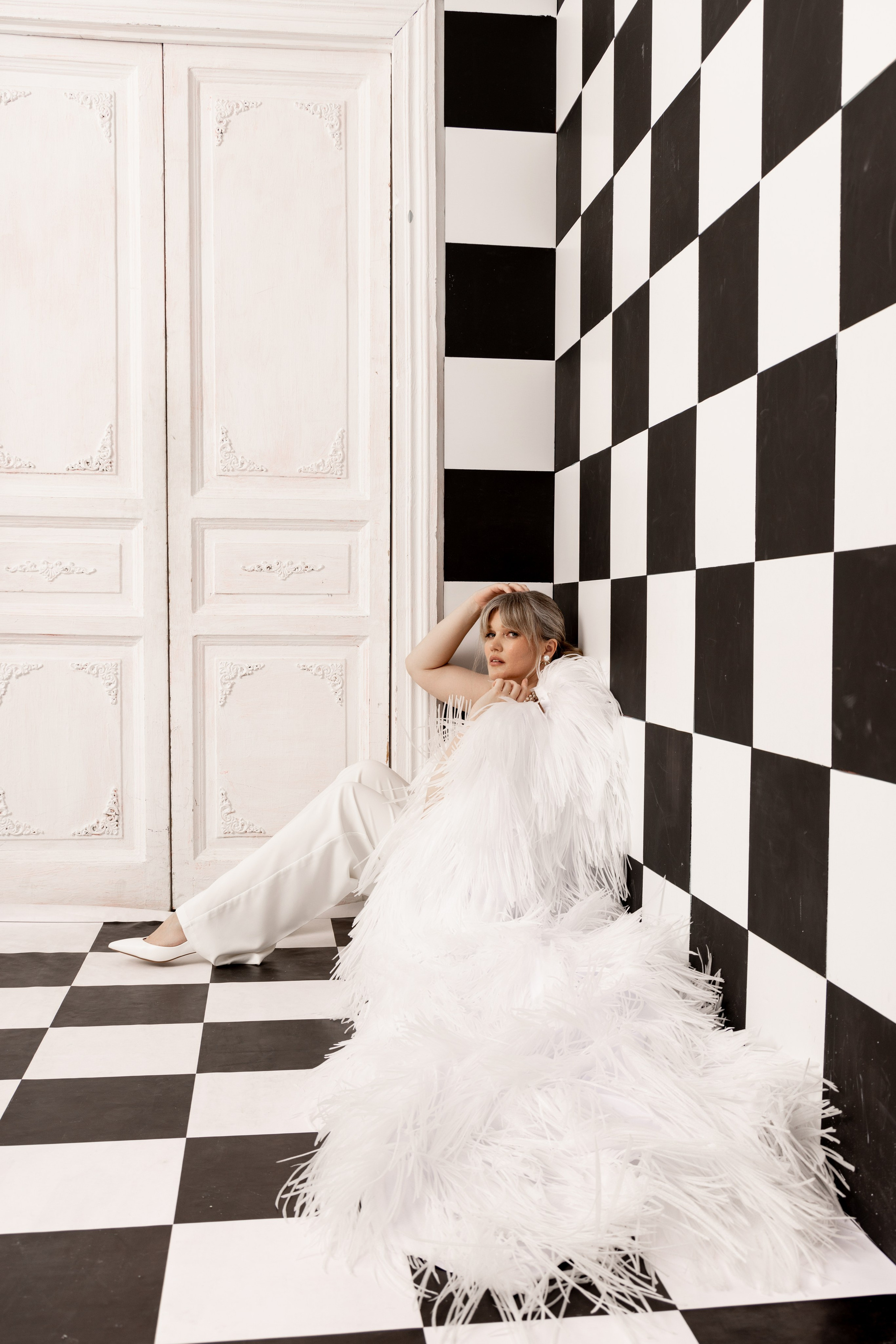 Стилист предложила варианты по образам героинь, нам хотелось чего-то необычного и в этом плане удачной находкой Марии стала накидка-перья, а образы в целом получились яркими и запоминающимися.